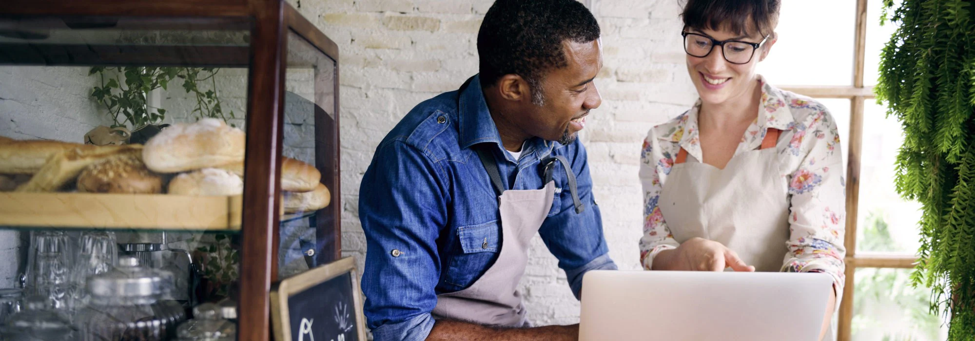 Man and woman working together on their laptops